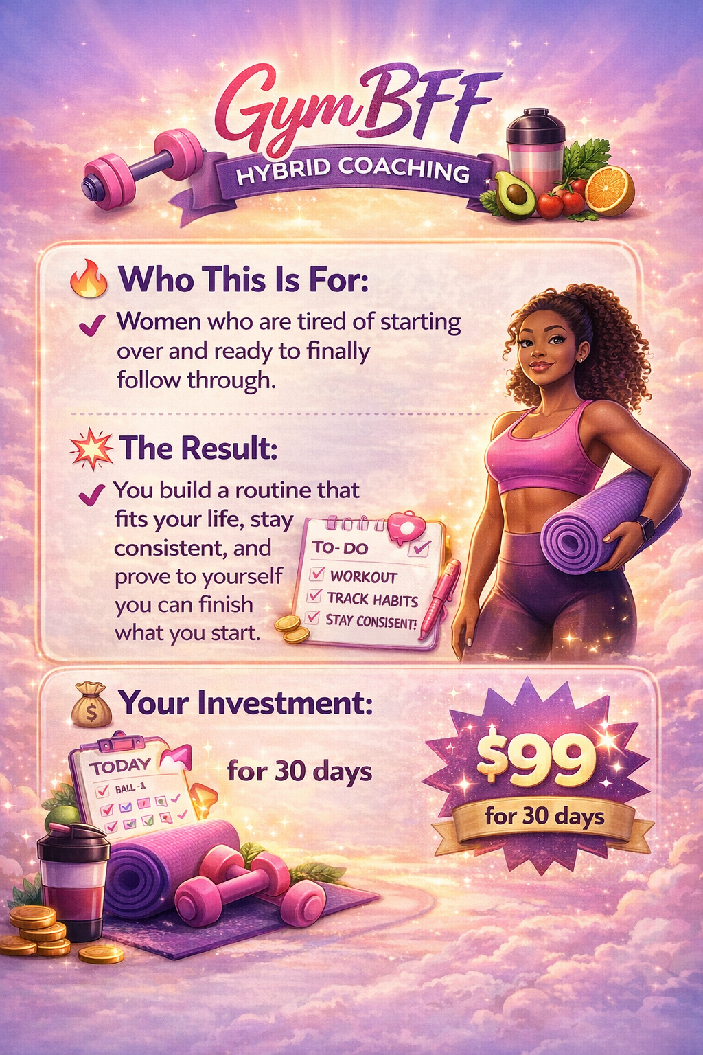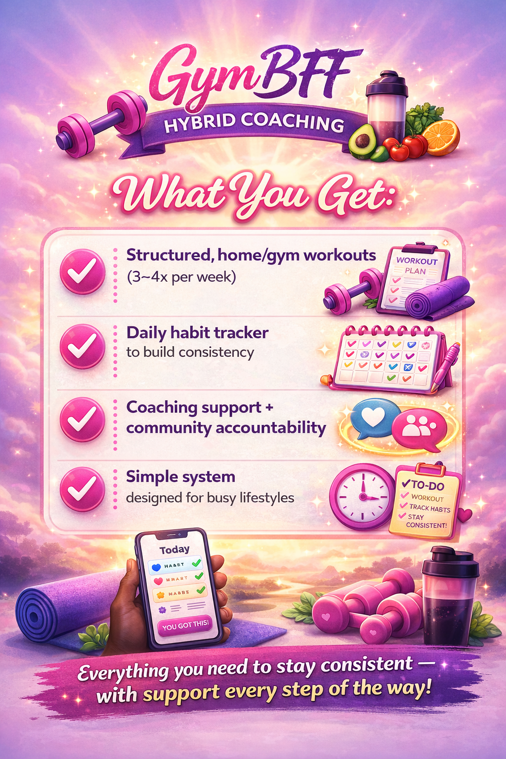 With structured workouts, daily habit tracking, and built-in accountability, you’ll have everything you need to follow through—without relying on motivation.